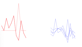 One advantage that lines have over bars is that they can be overlaid or stacked on top of eachother, whereas bars under normal circumstances can only be stacked. So let’s use that to our advantage and draw 2 overlapping lines for the x and y values.