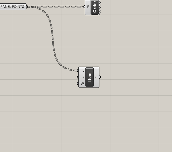 List Item (Item)component to do this. Plug your new Data Tree of points into the L input on theList Item (Item). The i output on this component gives you the first item in EACH list - so it's not just one value, but rather the first item for EACH panel - so it should be dozens or hundreds of points. The inportant thing to note, however, is that this will be the lower left hand corner point of each panel! By default, this gives you the first item in each list. But if you wanted to start with a different one, plug a value in to the i input to define the starting point. - Let's get the other three. This is easy - just zoom in to the