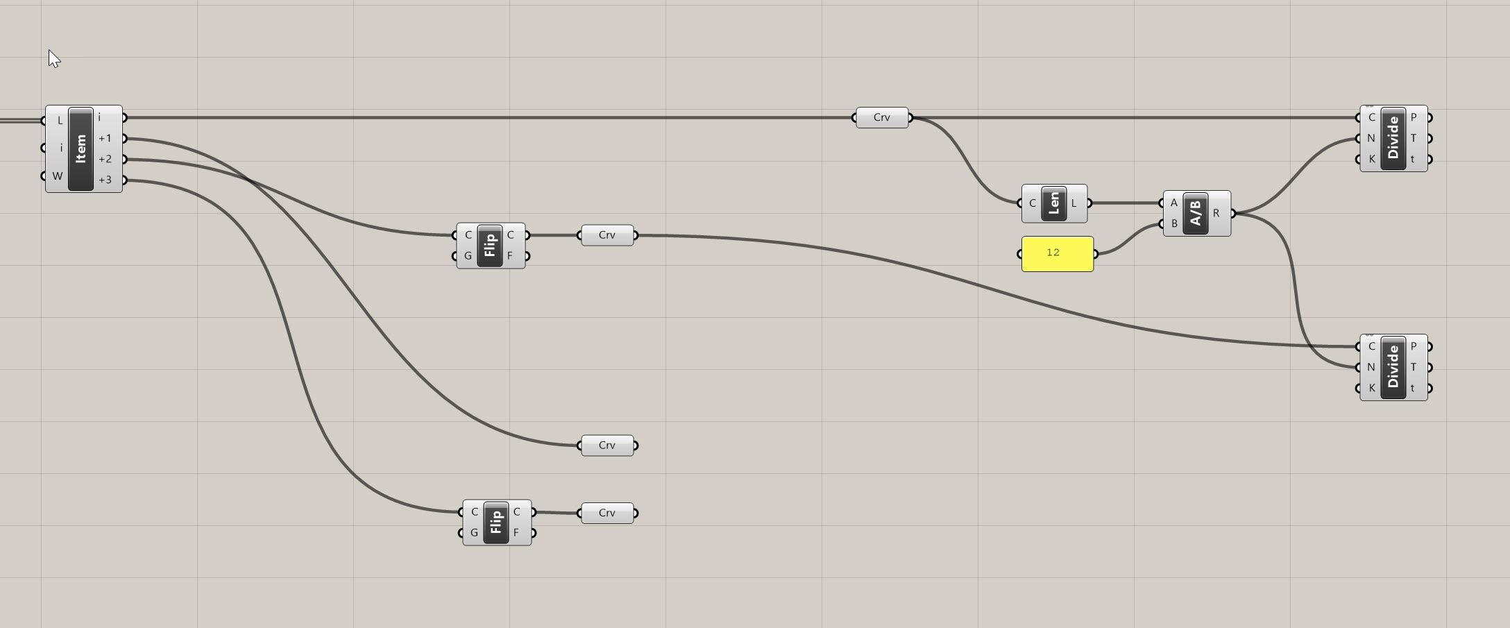 Length (Len)component to measure the first edge. - Divide that length by a target spacing value using a