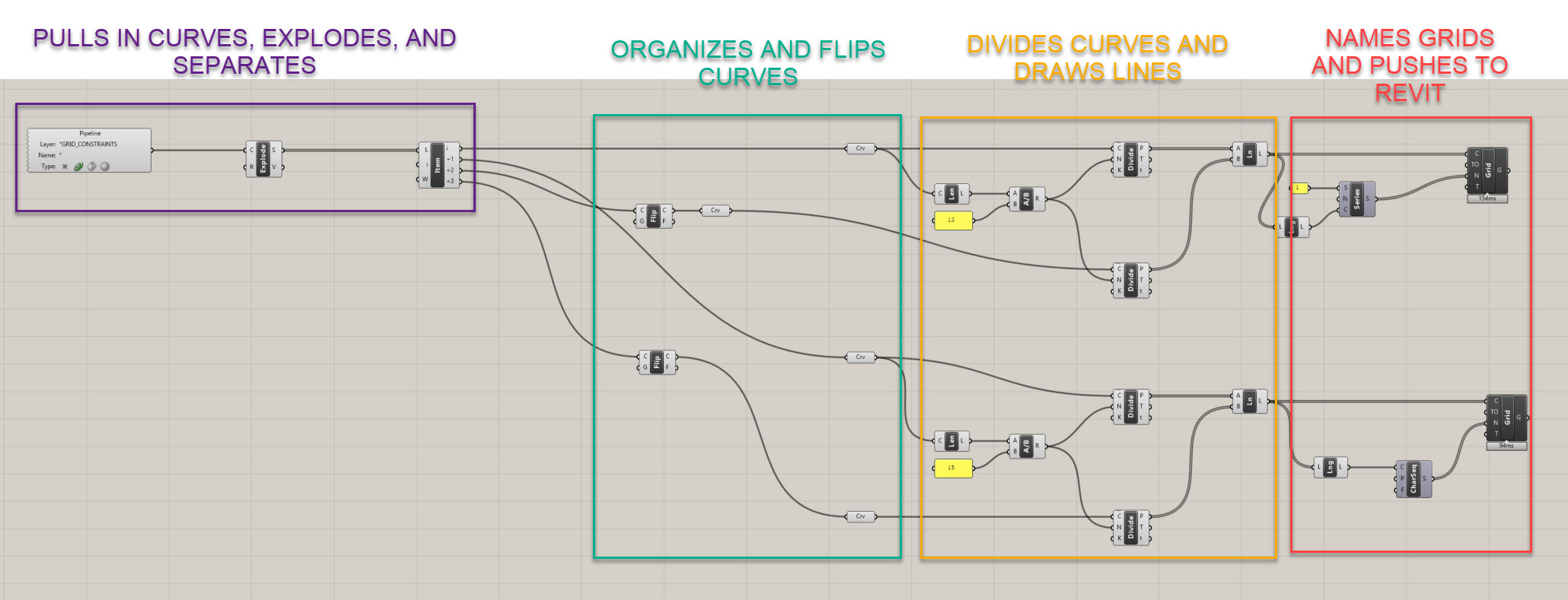 - Pushed the results into Revit using Add Grid with automatic numbering and lettering