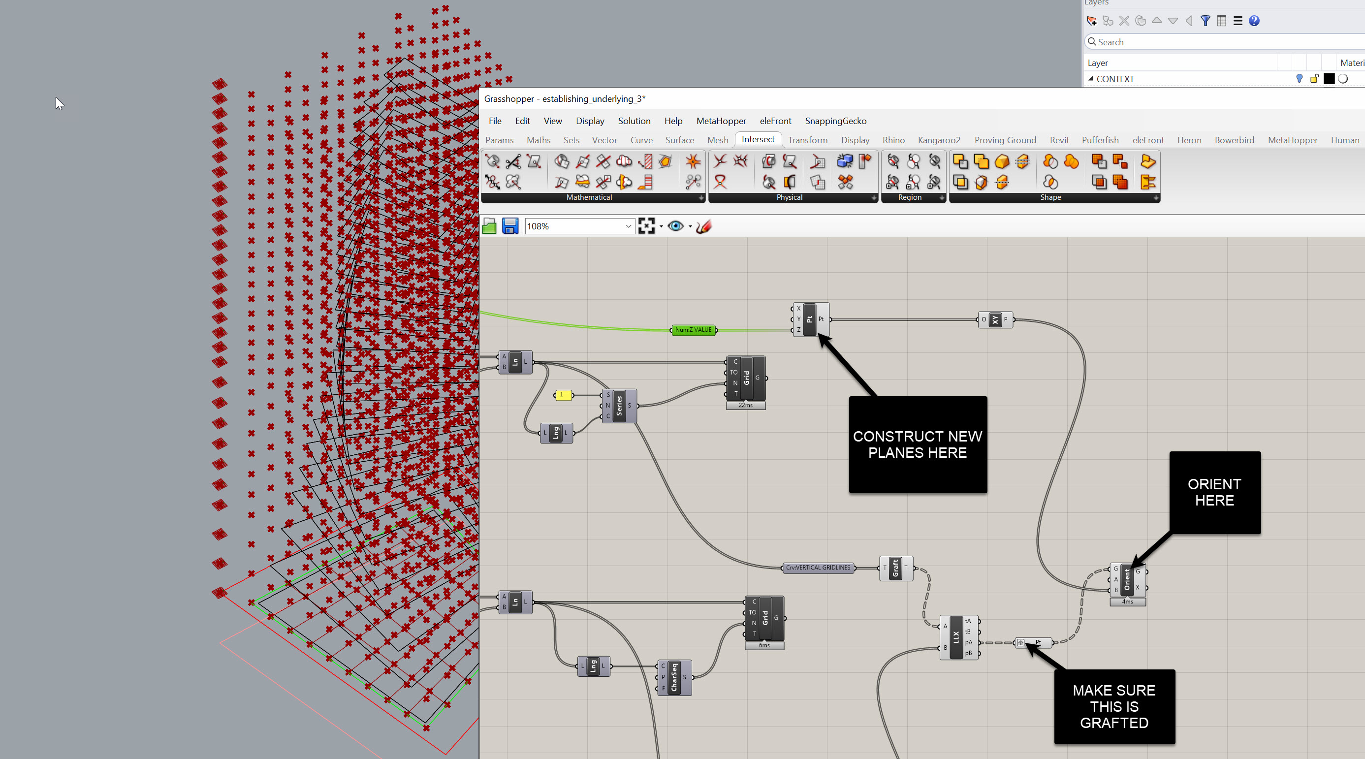 Once we have the grid intersection points, we need to replicate them up through the building — one set of points per level.