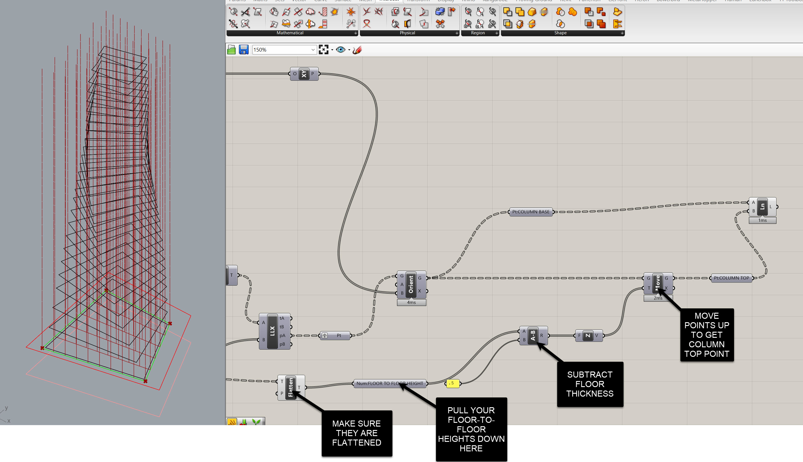 - For the top points, we’ll move the base points up by the floor-to-floor height, minus the slab thickness.