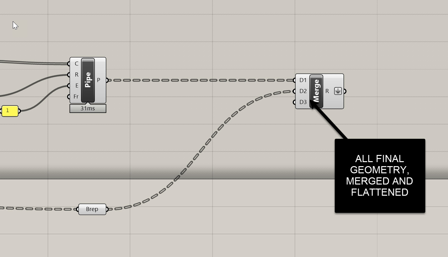 At the end of my GH definition, everything collapses into one merged, flattened list of geometry. This single list is essential:
